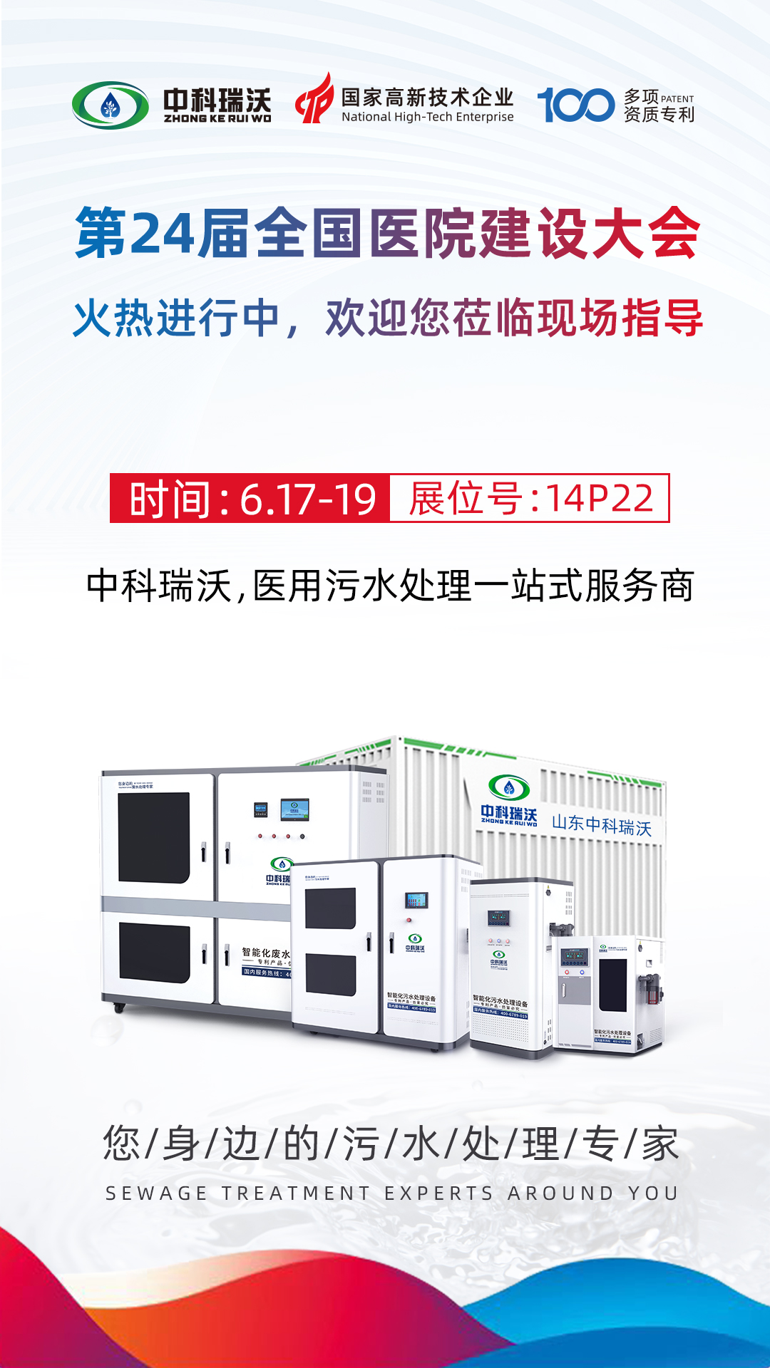 此次展会为期三天,6月17-6月19号您都可以莅临全国医院建设大会好色先生污污版展位,好色先生污污版将为您提供专业系统化的医用污水解决方案!