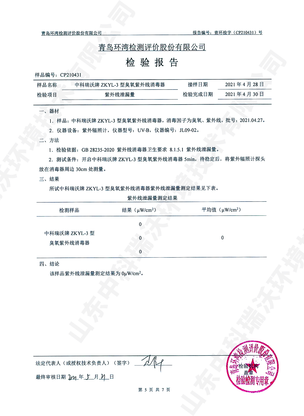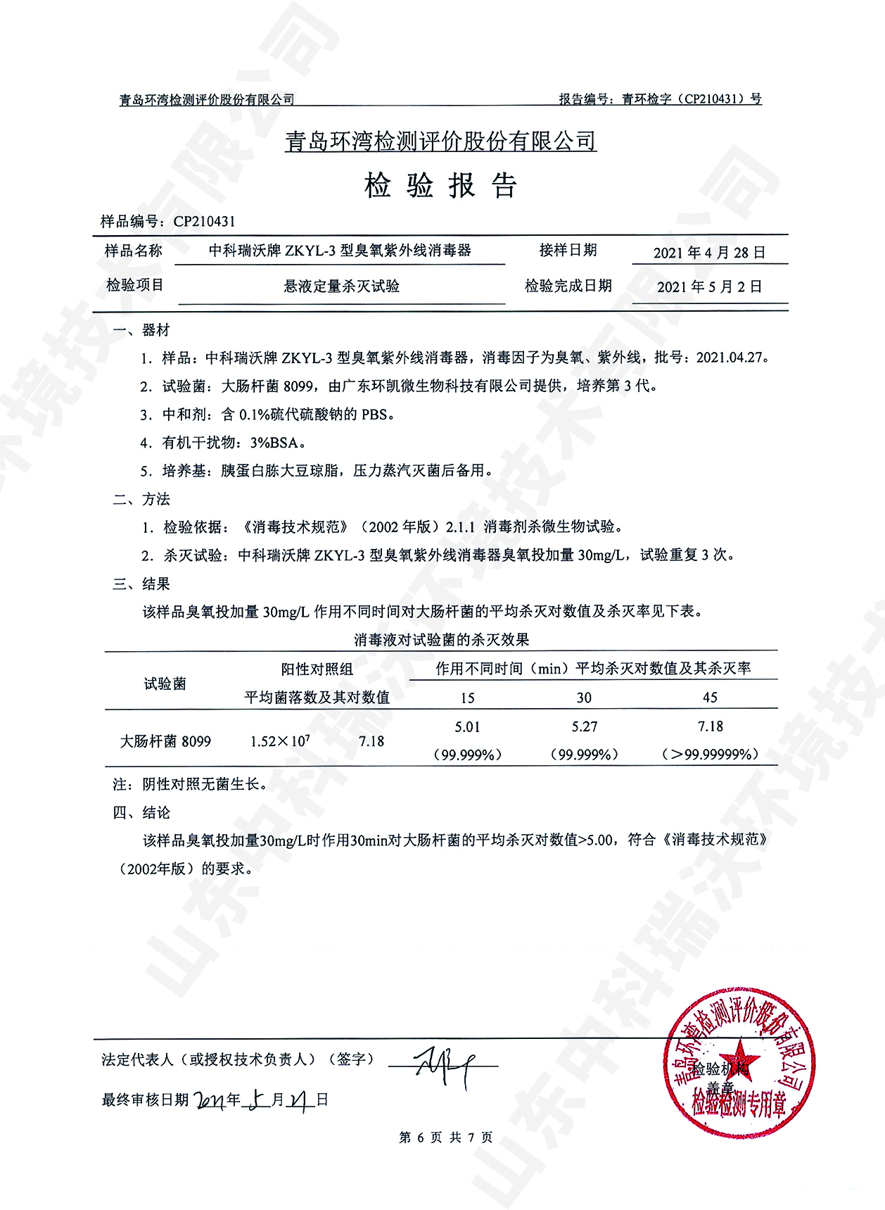 医疗污水处理设备检测报告~臭氧消毒